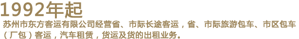 苏州市东方客运有限公司成立于1992??月底,经营省、市际长途客运,省、市际旅游包车、市区包??厂包)客运,汽车租赁,货运及货的出租业务。二十多年来公司本着海纳百川、厚德载物的企业理念,求得较快发展,已拥有各类车??00多辆,驾驶员600多名??006年顺利通过ISO9001??000质量体系认证??013年通过ISO9001??008质量体系认证2018年又通过了ISO9001??015标准质量体系认证成为邓白氏注册TM认证企业??/div>